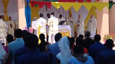 Sabato siamo andati a Mapanda per i cinquantanni di gemellaggio tra la diocesi di Bologna e quella di Iringa. Per l' occasione si sono celebrati dieci matrimoni: nella foto vedete in prima fila gli sposi e dietro i testimoni.
